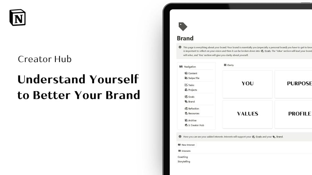 Notion is a free-to-use single digital space where you can think, write, and plan. Capture thoughts, manage projects, or even run an entire company โ€” and do it exactly the way you want. Creator Hub is built inside Notion and is easy to use and set up even with no prior knowledge.